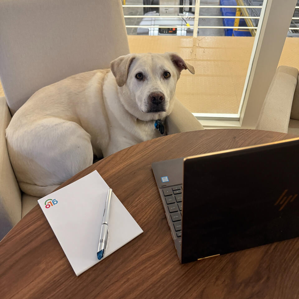 Always Hungry. Buddy is Eric's dog and is always a helpful sounding board - always there to solve the world's biggest problems, but only if snacks are included.